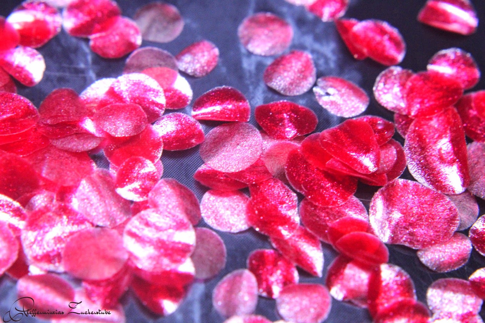 Wenn die Pailletten trocken sind lassen sie sich ganz einfach lösen, entweder mit den Fingern oder mit einem, nicht so scharfen, Messer.