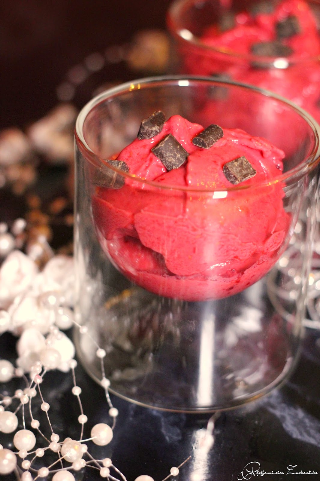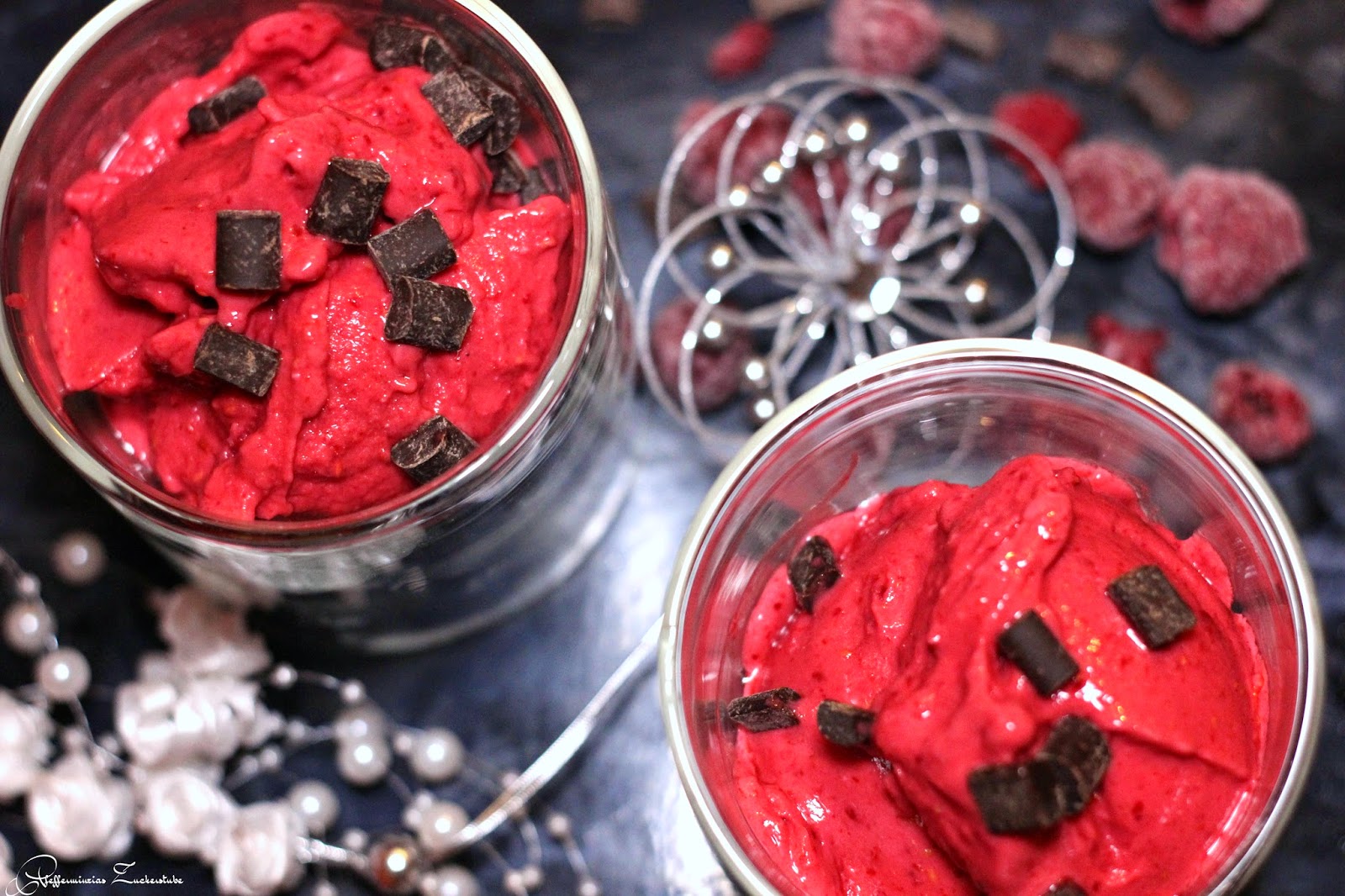 Frozen Joghurt mit Himbeere und Zartbitterschokolade