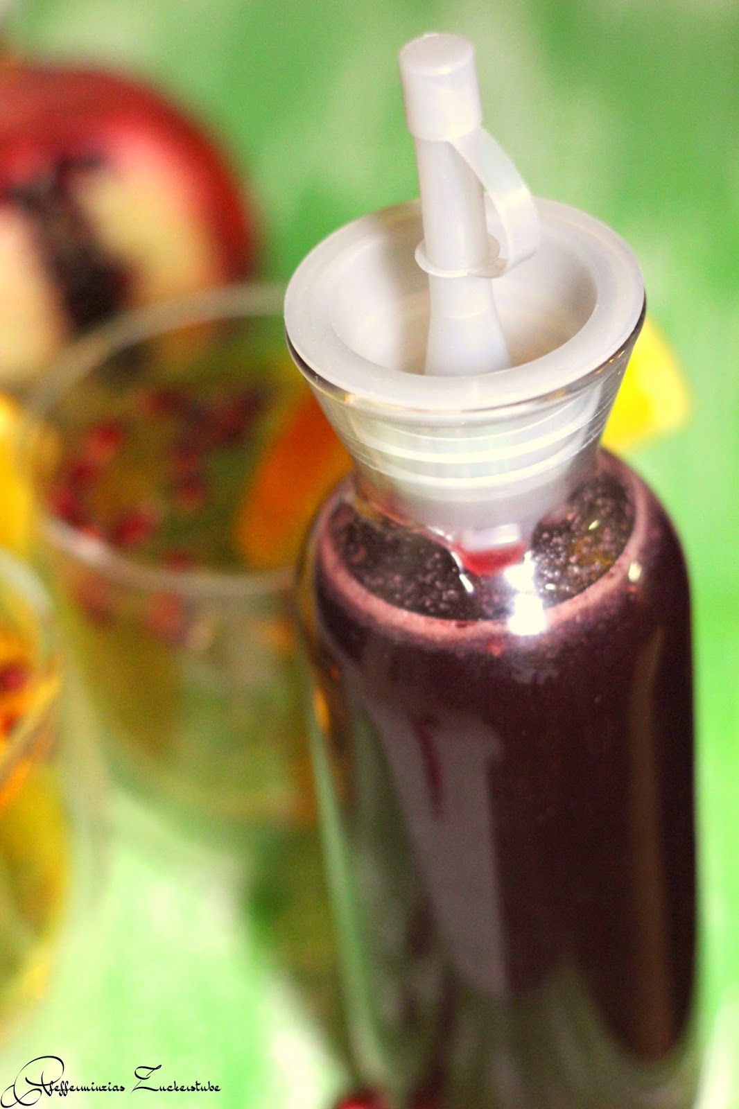 In der Herstellung sehr einfach und super geeignet für verschiedene Drinks. Auch in Tee gebe ich, anstatt von Zucker, gerne etwas Granatapfelsirup hinein. In Früchtetee ist es ein Traum, aber nicht in Kräutertees- da würde ich definitiv von abraten. :)Über Eis, über einen (Obst-)Salat, zu einem Stück Sahnetorte…ganz egal wohin ihr den Sirup träufelt, er wird alles, was eine süß-saure Note verträgt, sehr stimmig abrunden.