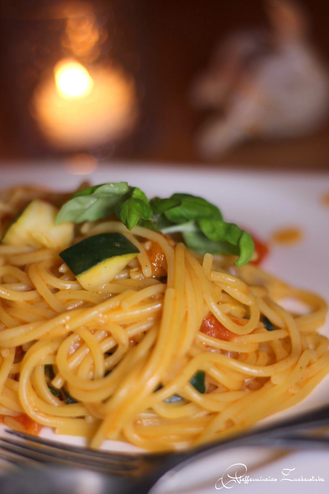 Entweder teilt ihr die Spaghetti mit niemanden und mampft sie direkt aus dem Topf oder ihr richtet sie mit etwas Basilikum (und Käse ?!) auf einen Teller an. Egal für welche Variante ihr euch entscheidet, ich wünsche euch einen guten Appetit und viel Freude über den wenigen Abwasch. 😉 ♥