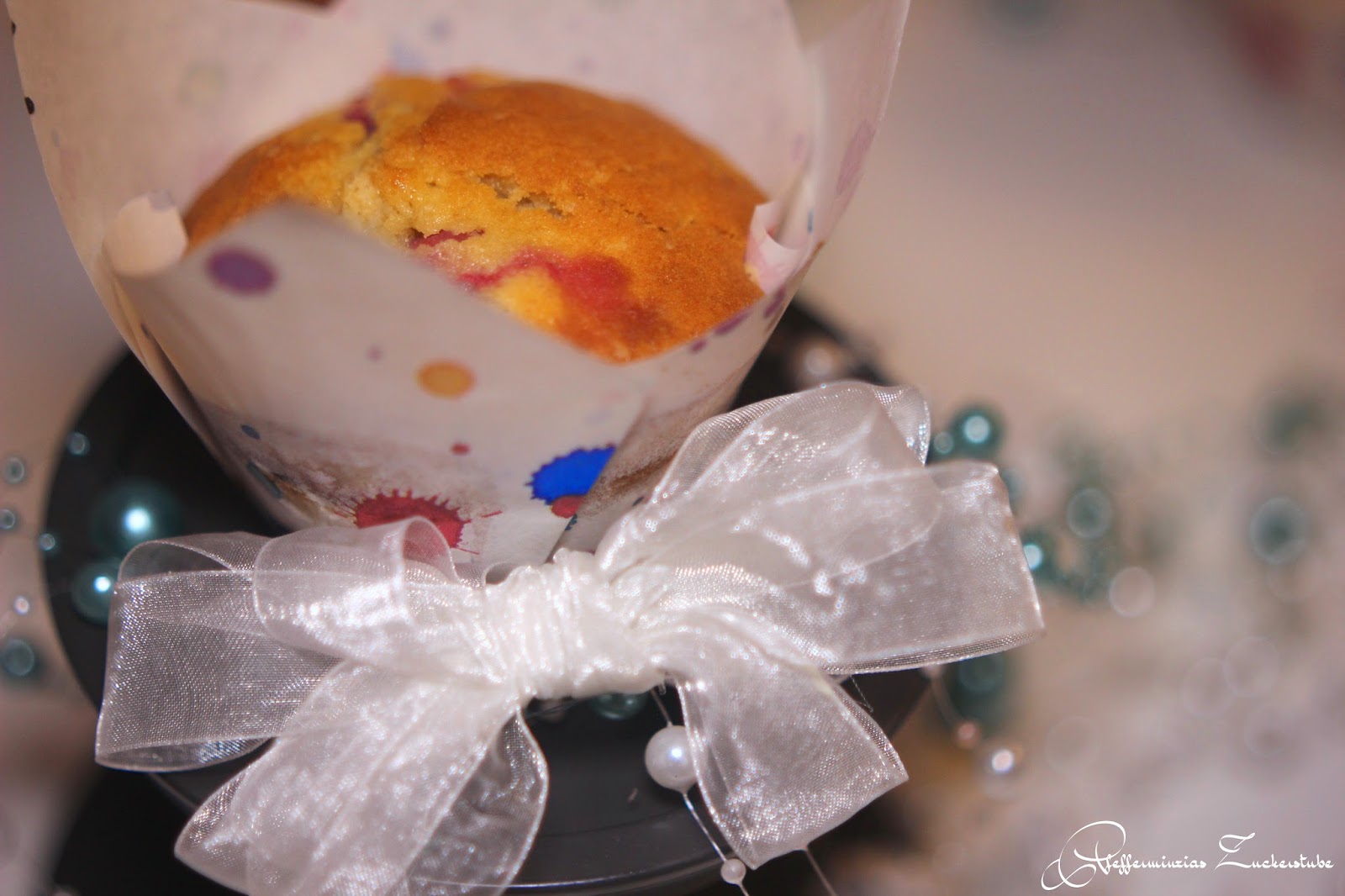 Wer möchte darf die Muffins noch mit Deko, wie Zuckerperlen, verzieren.