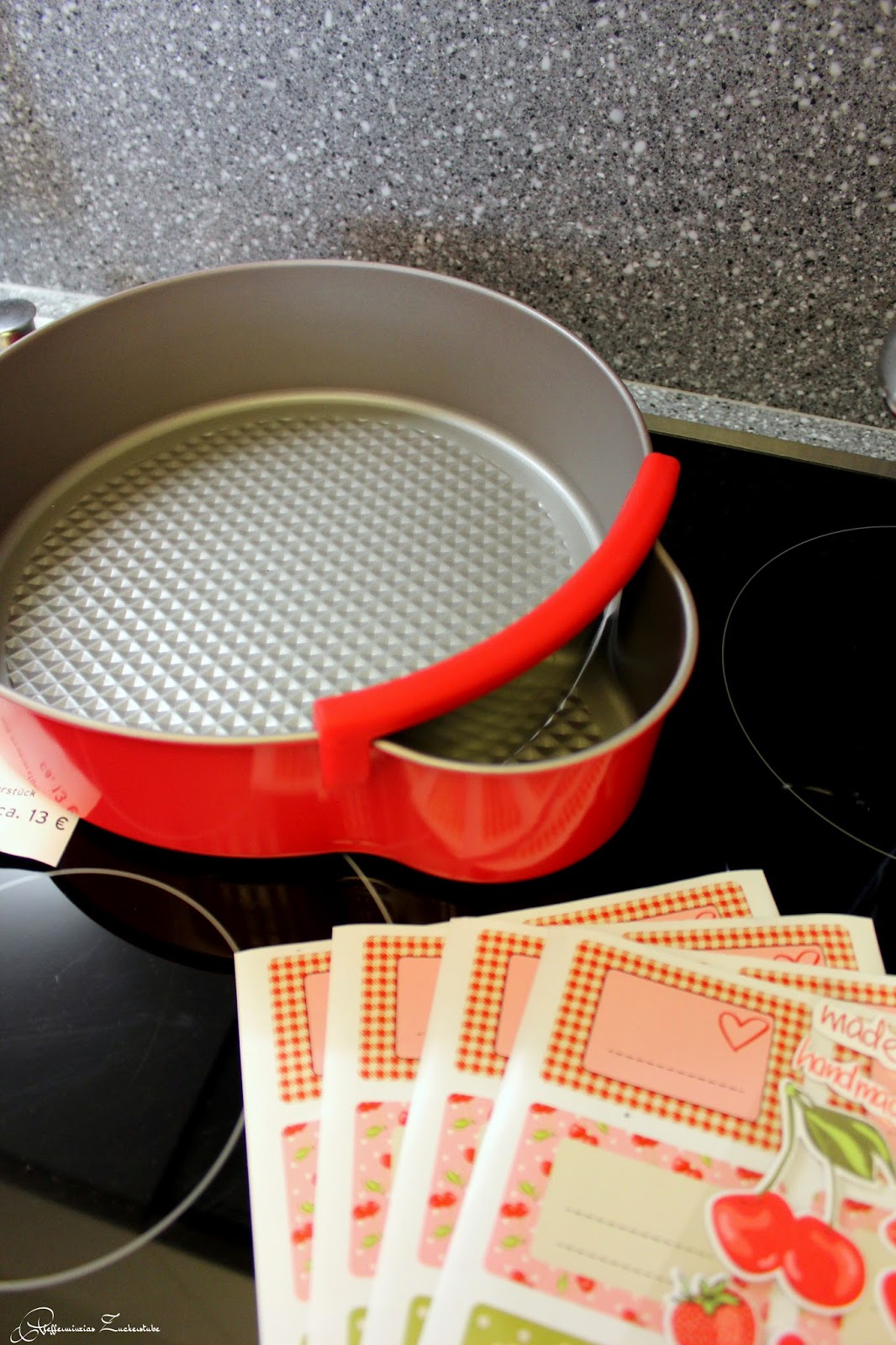 Die Backform hat einen Durchmesser von ca. 26 cm und wird zusammen mit einem Edelstahl-Abtrenner geliefert. Nicht nur die Backform und dessen „Sonderfunktion“ ist süß, auch der Preis. Für ca. 13 Euro erhaltet ihr diese Form. Ich habe einige Backformen Zuhause und für diese habe ich weitaus mehr Geld ausgegeben. Zudem ist sie noch Antihaftbeschichtet, ich werde mir ganz sicher eine kaufen. 🙂