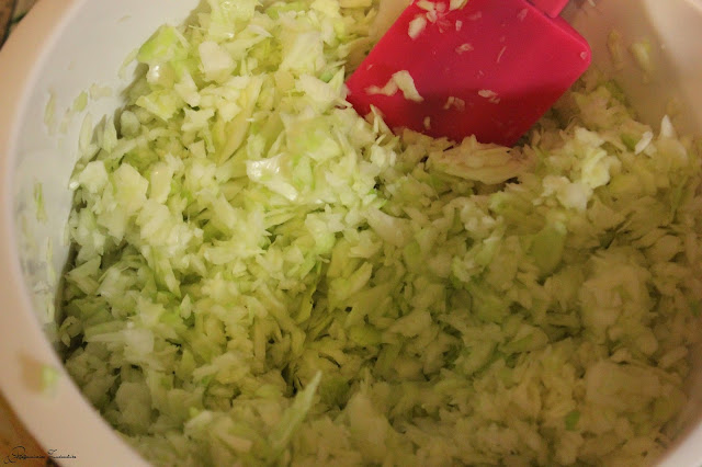 Das zerkleinerte Weißkraut in eine Schüssel umfüllen und die anderen 300g im Mixtopf (5/-/4) zerkleinern. Auch diese in die Schüssel umfüllen.