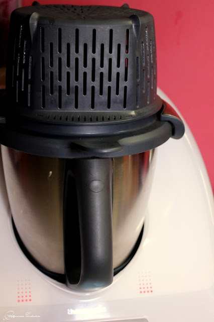 Der Varoma hat 3,3 Liter Fassungsvermögen, das sind 10% mehr als bei seinem Vorgänger, dem Thermomix TM31.