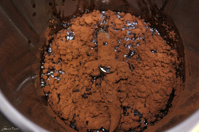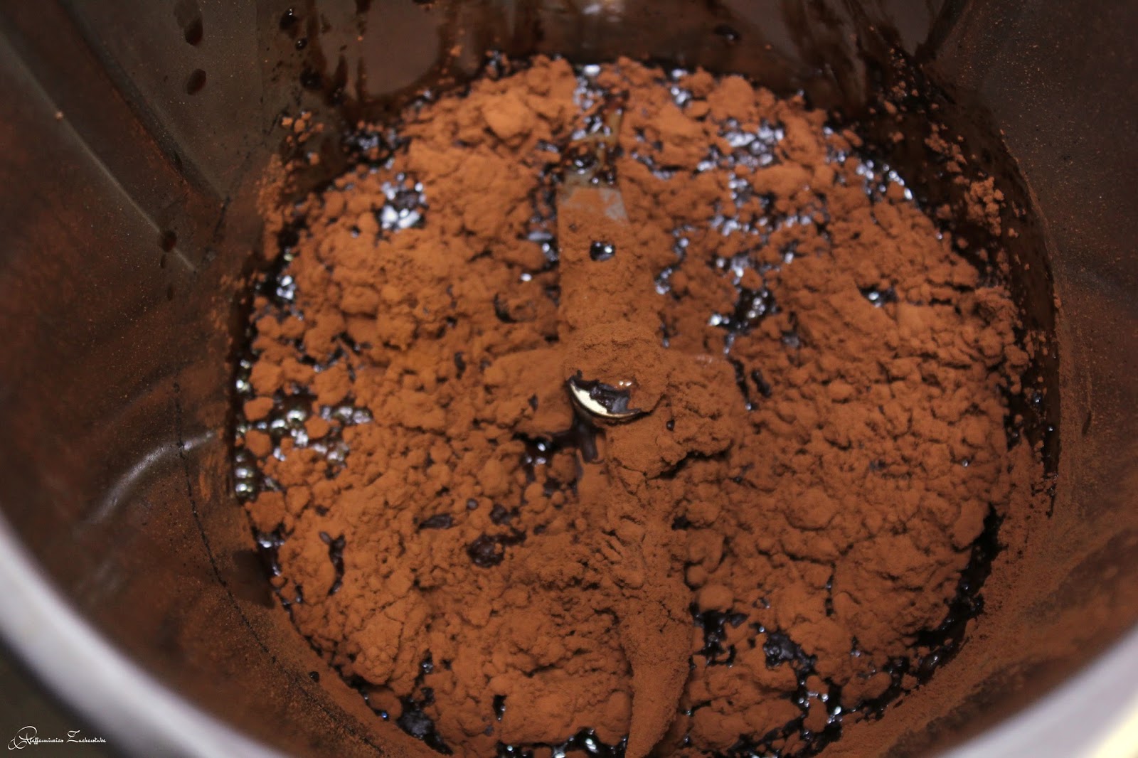 Anschließend das Kakaopulver hinzugeben und für 4 Minuten/Varoma auf Stufe 4 köcheln und verrühren lassen.